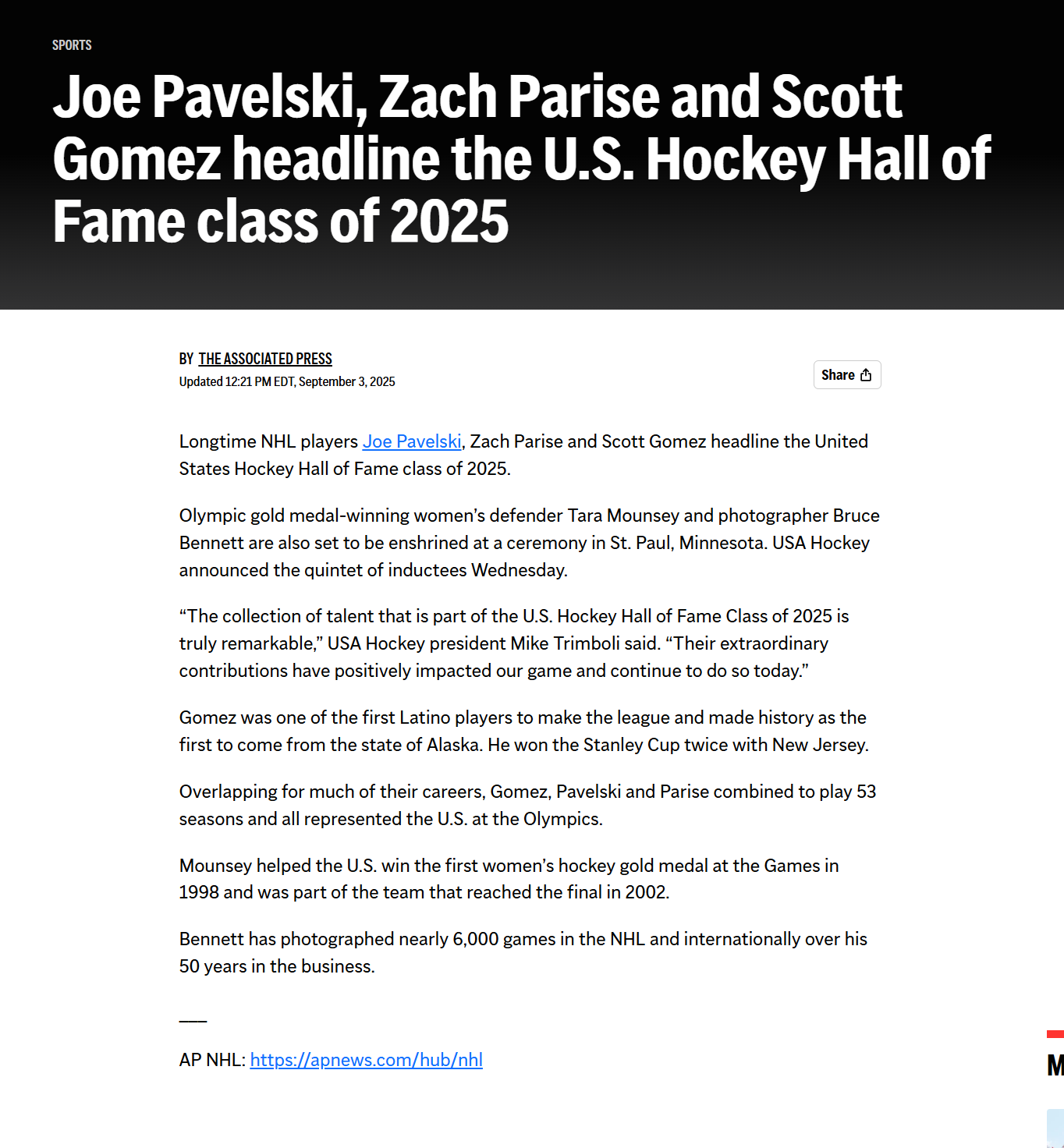 New York State Hockey Hall of Fame Induction Speech - June 2025